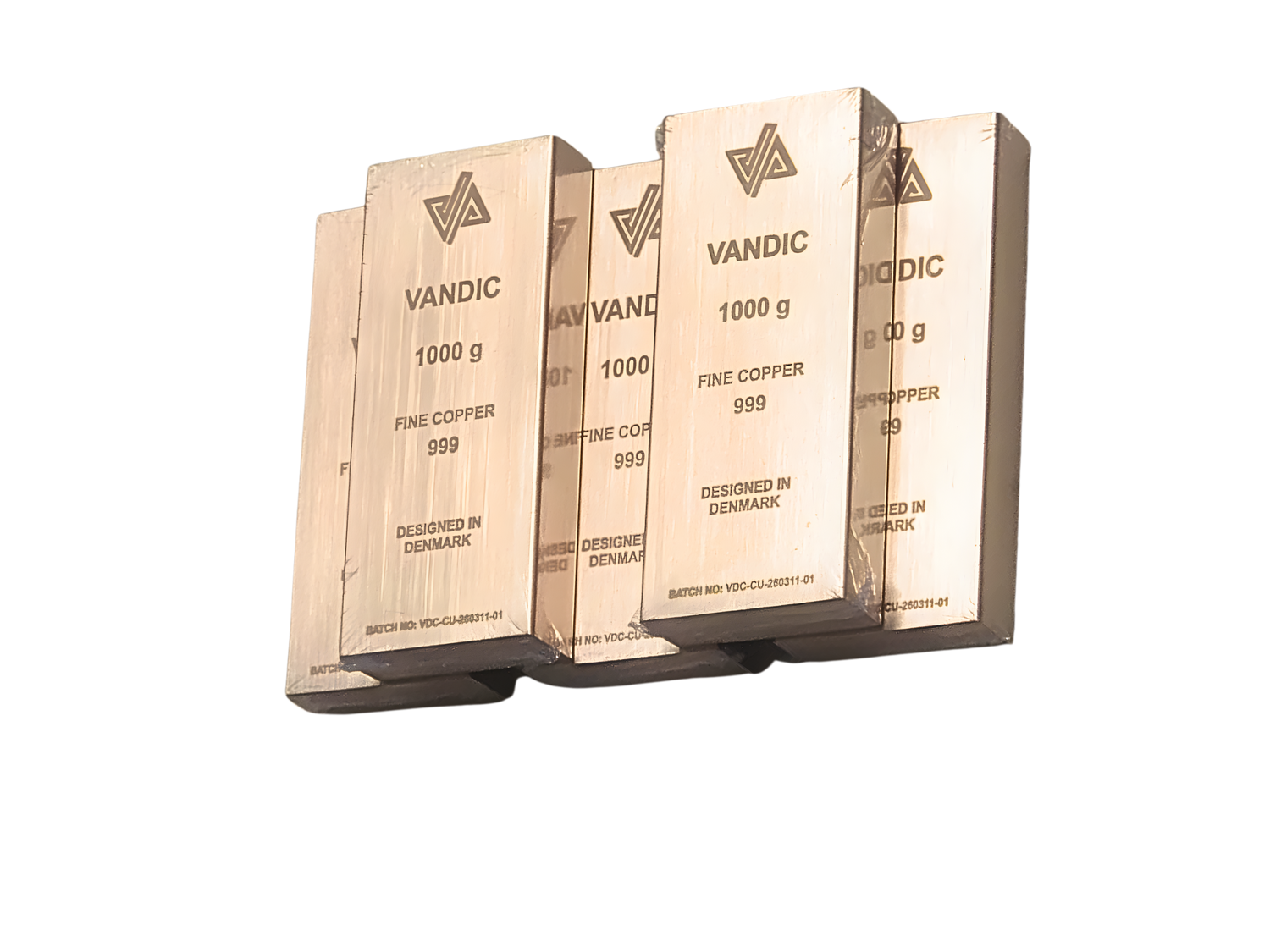 Kobberbarer i 999 kobber med medfølgende certifikater.