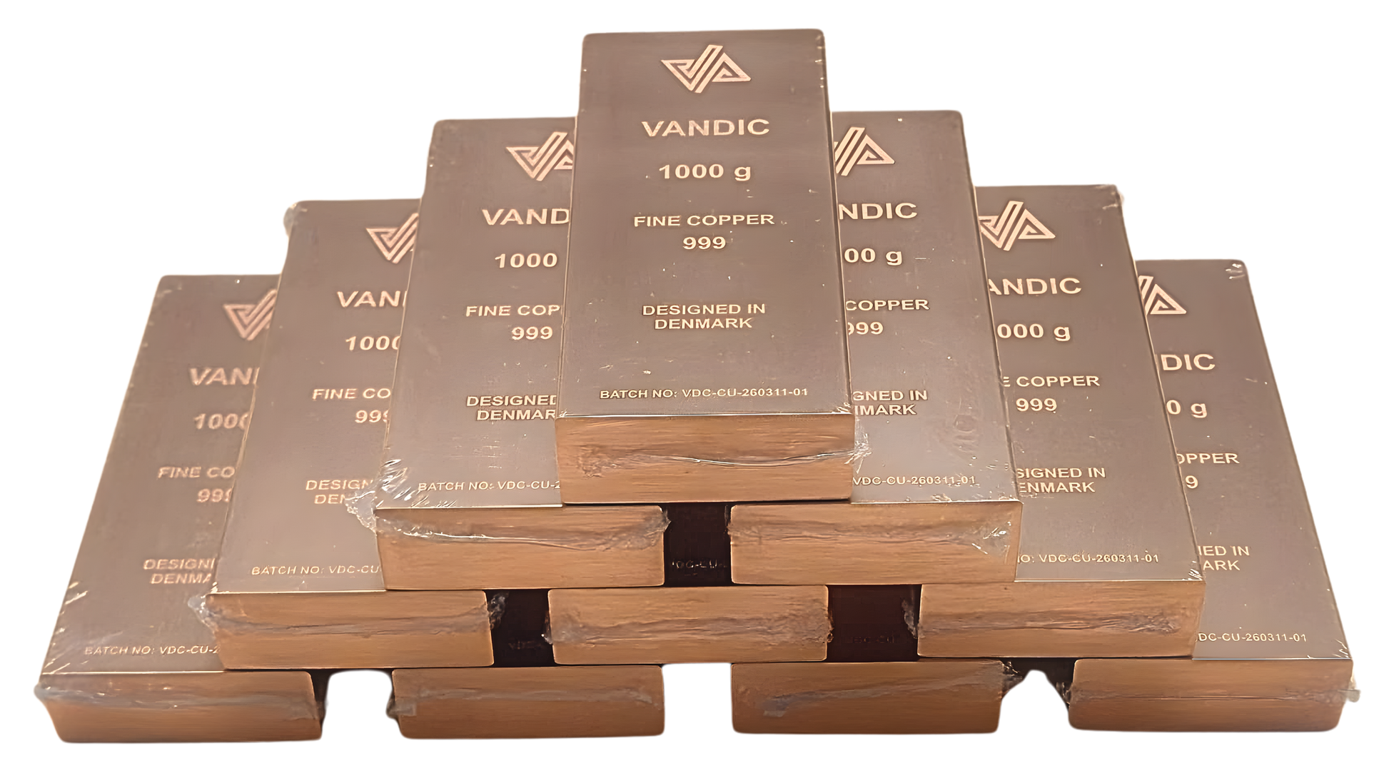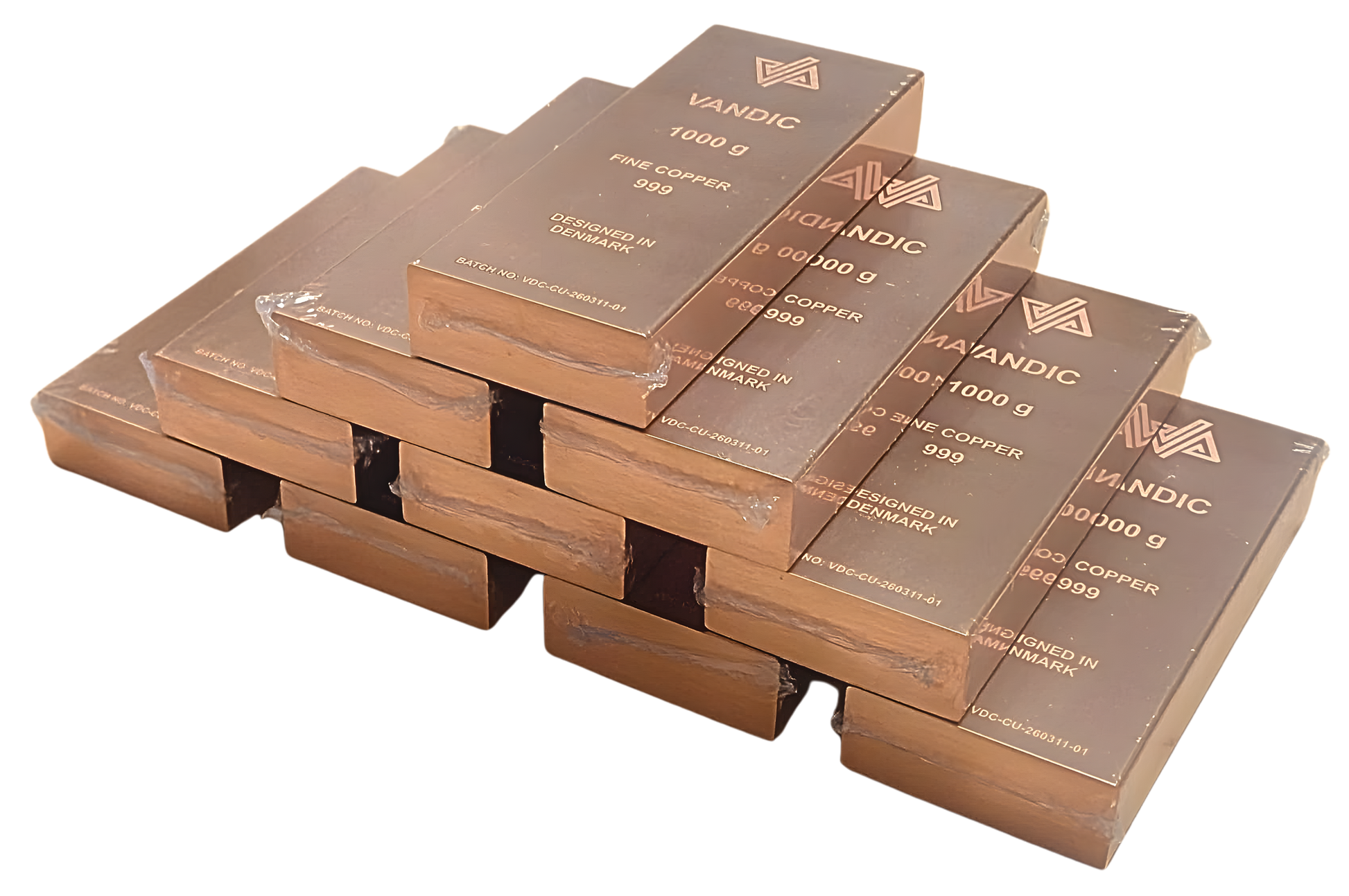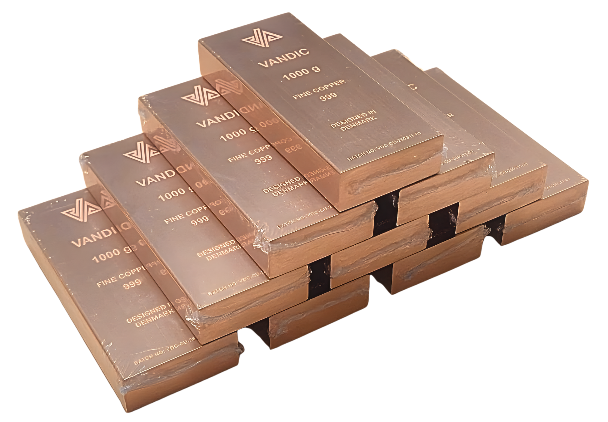 10 kg kobberpakke bestående af 10 stk. kobberbarer á 1 kg i 999 fine copper med medfølgende certifikater. Skabt med fokus på et rent, eksklusivt udtryk og en præsentation, der gør sættet velegnet til display, samling eller gave.